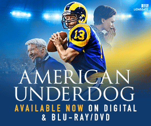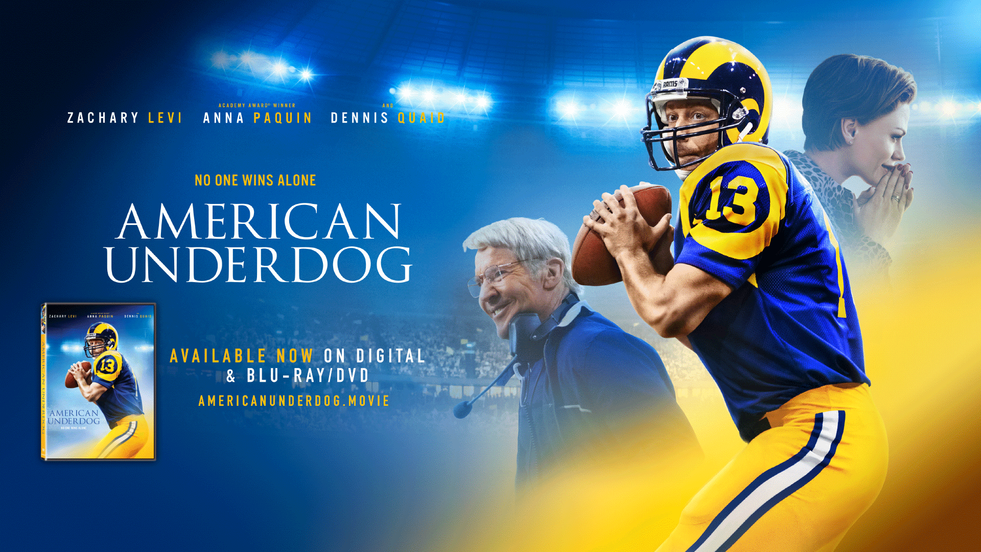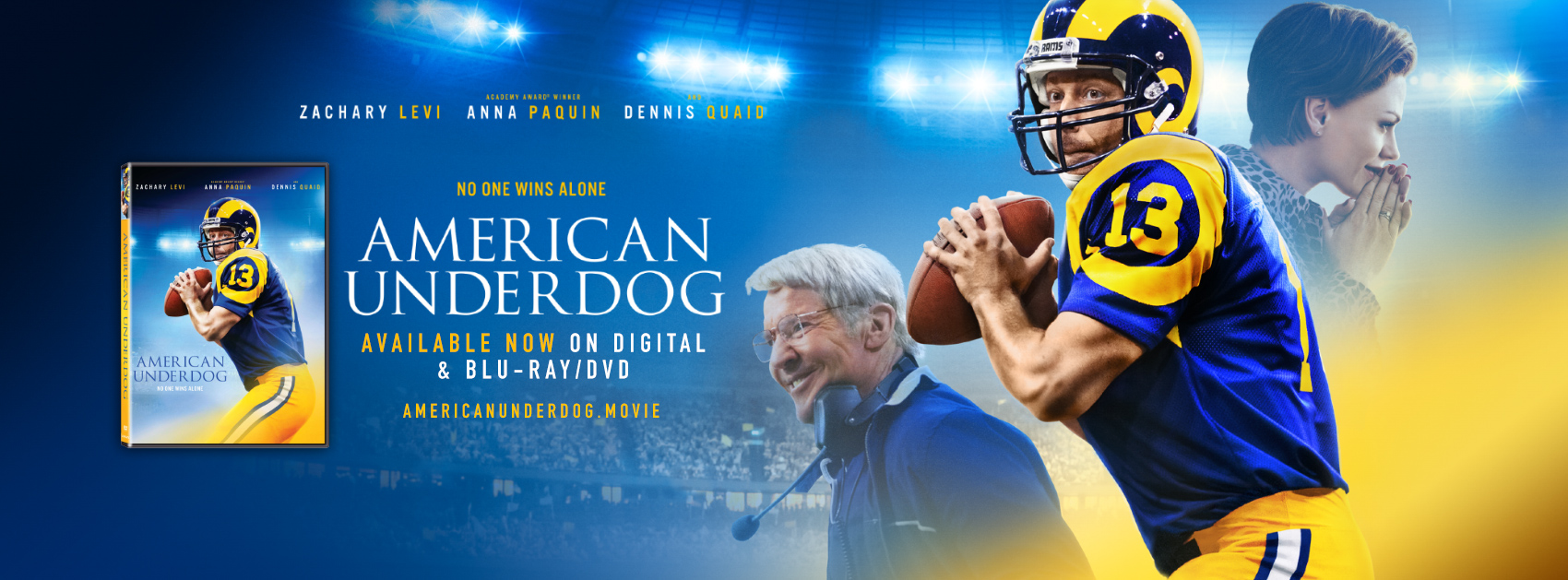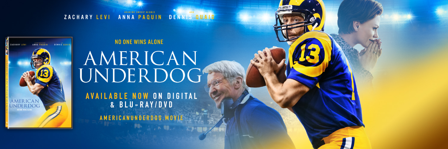 Life made them underdogs. Faith made them champions. From Kingdom Story Company and The Erwin Brothers—the directors of I CAN ONLY IMAGINE—comes AMERICAN UNDERDOG, based on the inspirational true story of Kurt and Brenda Warner. Undrafted as a quarterback out of college, Kurt found himself stocking shelves in a grocery store to help support Brenda and her two kids, all while trying to hold onto his fading dream of becoming an NFL quarterback. This movie is sure to inspire the dreamer in all of us!